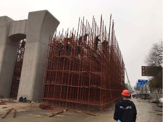 本項目全長1204.559m,其中橋梁全長684m,上跨武陵山大道節(jié)點274m,(4跨:55m+82m+82m+55m),為變高度全鋼箱梁;上跨天崇路節(jié)點橋梁110m(3跨:30m+50m+30m),為變高度預應力混凝土連續(xù)梁;西側(cè)引橋長300m(10跨:10×30m),為等高度預應力混凝土連續(xù)梁。子午橫斷面為50m,橋梁橫斷面為17.5m,該道路為城市主干道,雙向8車道,設計車速50km/h,橋梁使用年限100年,車行道采用瀝青混凝土路面,設計合理使用年限15年。